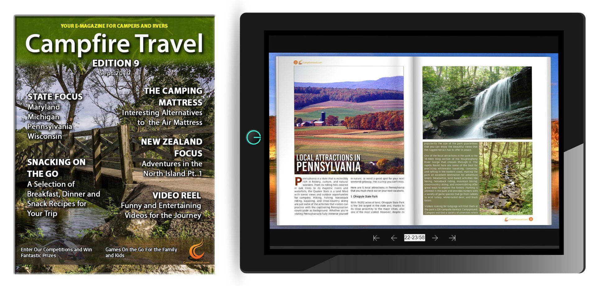 Have your ad featured in our monthly Campfire Travel eMagazine. We bring fun, entertainment and news to RV and Camping enthusiasts everywhere. Each month we will focus on four or five states across North America.
